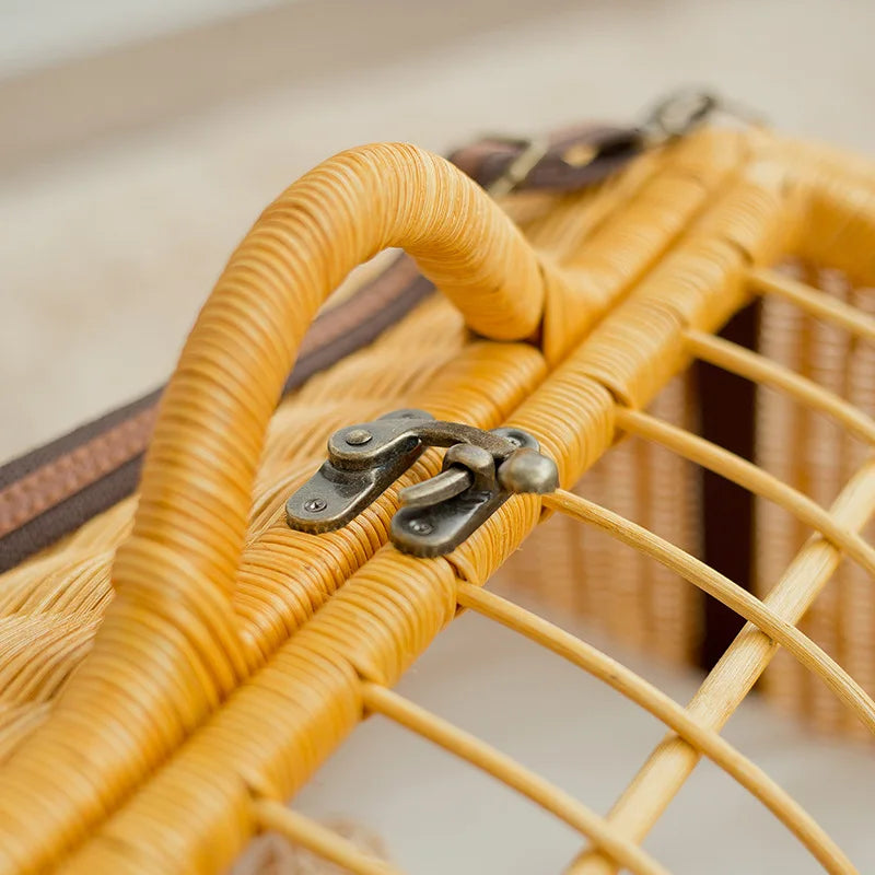 Luxury Rattan Pet Carrier Bag – Stylish Travel Tote for Cats & Small Dogs